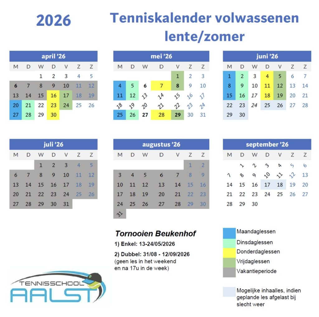 !! De lentekalender is te vinden onderaan deze pagina, zo kan u de lessen reeds optimaal inroosteren. !!